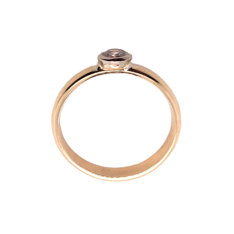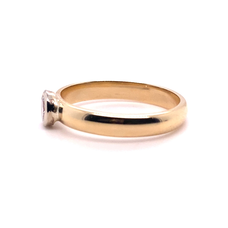 0.10ctw, Diamond 3mm Domed Ring, 14kt Yellow Gold with one Round Diamond Bezel Set, Carat: 0.10ctw, Clarity: VS, Color: G. Crafted in 14kt Yellow Gold.