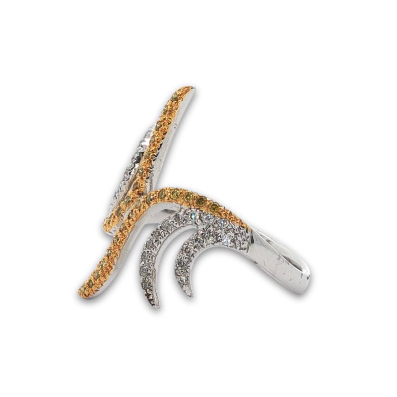 0.14ctw White Diamonds Pave Set and 0.13ctw Fancy Yellow Diamonds Pave Set in Free Form Fire Look. Crafted in 18kt Gold