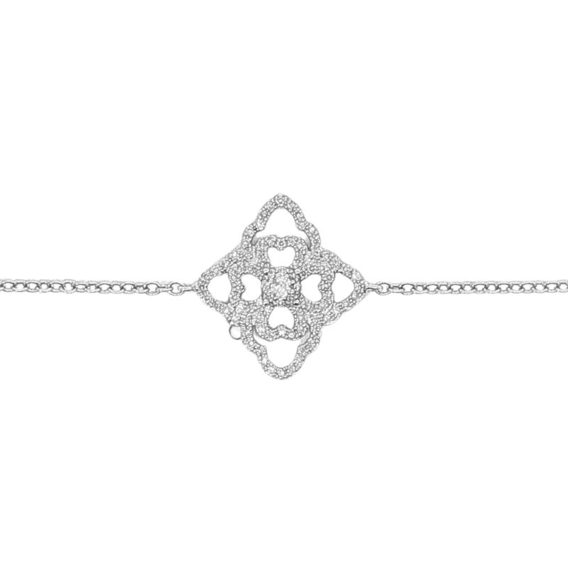 One diamond bracelet featuring a diamond floral deisgn center made up of 0.30ctw worth of round diamonds with SI1 F-G Color and Clarity. Crafted in 14kt white gold on a 1.6mm rolo chain.