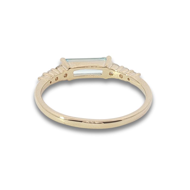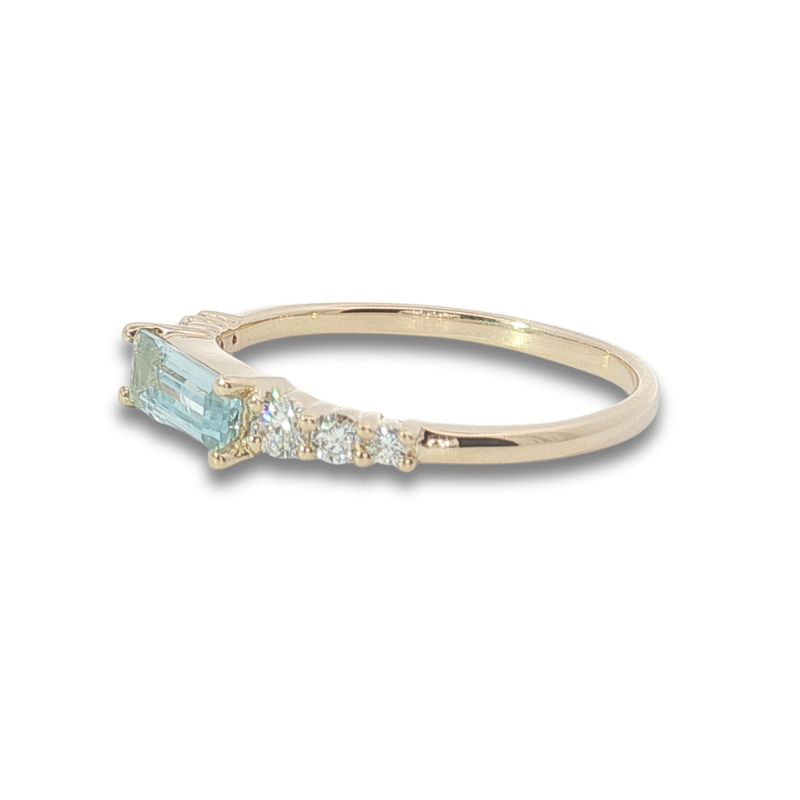 Bar Ring with 6 Round Diamonds Prong Set 0.21cts, 8x3mm Green Amethyst 0.52ct Baquette Color Diamond Ring, 14kt Gold