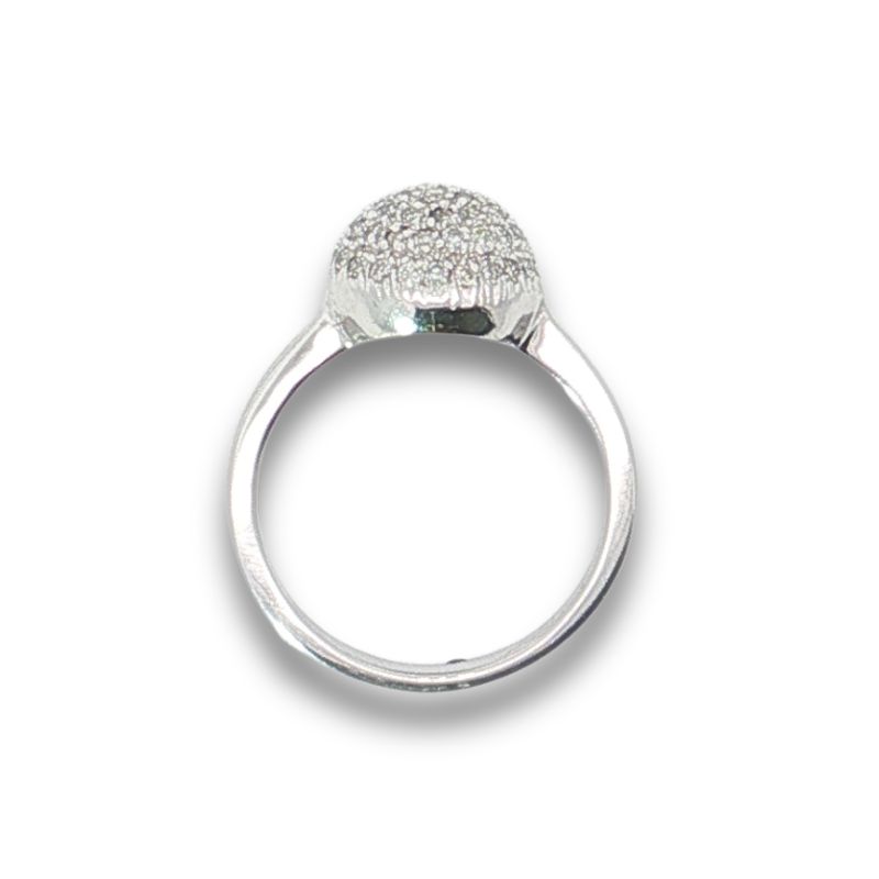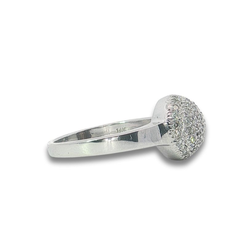 10.5mm Round Dome Full Pave Set at 0.58ctw, SI-2 Clarity and H Color. Crafted in 14kt White Gold