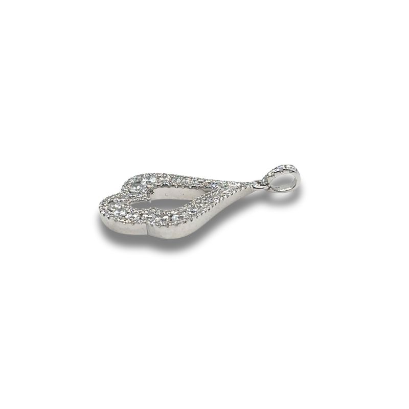 Open Spade Pendant with 0.85ctw, SI Clarity and G Color. 16mm wide by 24mm Long. Crafted in 14kt White Gold