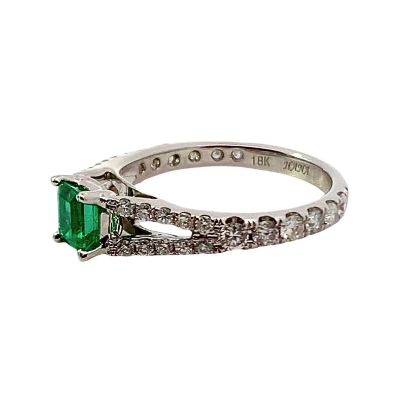 1.00ct Emerald Center with Split Shank 0.75ctw Diamond Ring, 18kt
