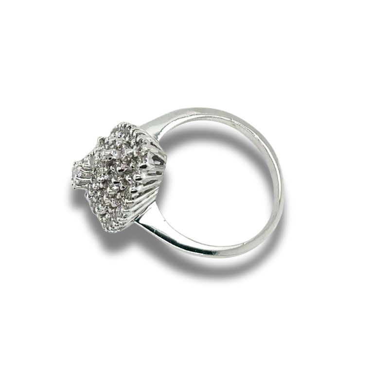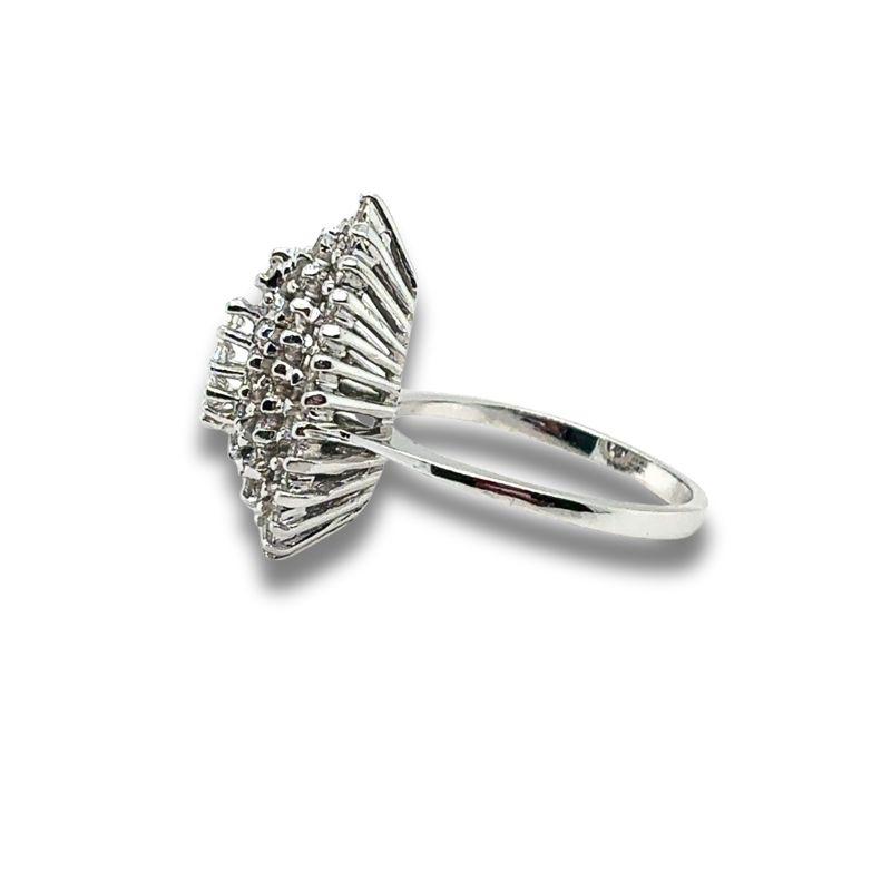 Tear Drop Cluster Ring with 61-rd Single Cut Diamonds Prong Set at 1.00ctw, VS Clarity and F-G Color. 20×13.5mm Dimensions Crafted in 14kt White Gold, Vintage Circa 1950’s