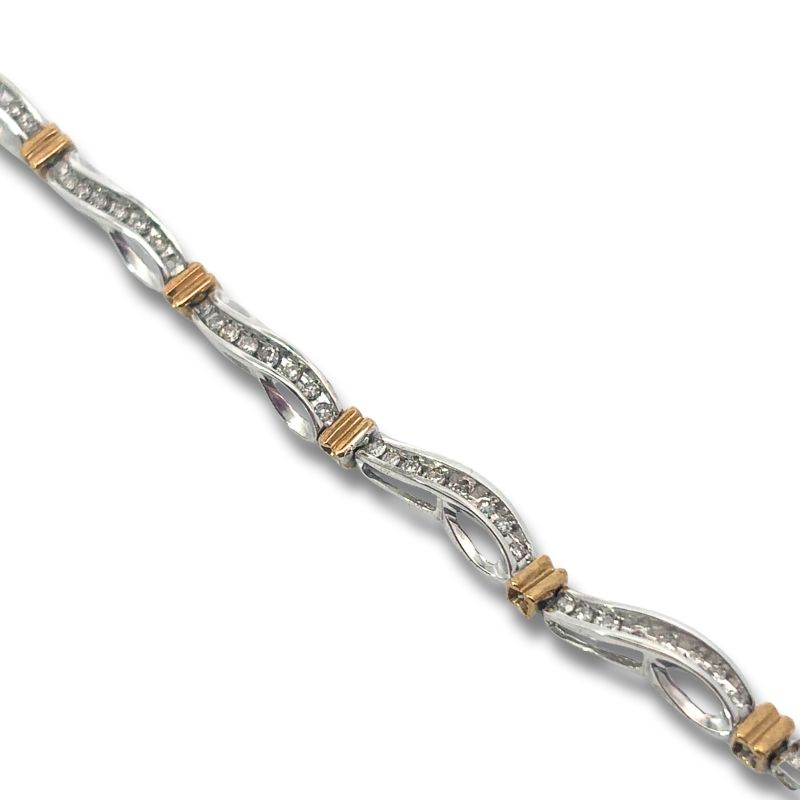1.00ctw Tow Tone Single Cut Wavy Diamond Bracelet, 14