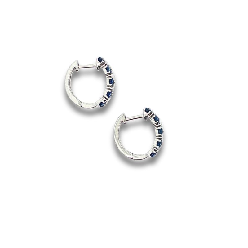 Serj & Sons Huggies with 20 Round Blue AAA Sapphires at 1.33ctw and 8 Princess Cut Diamonds at 0.67ctw, 15mm Long and Crafted in 18kt White Gold
