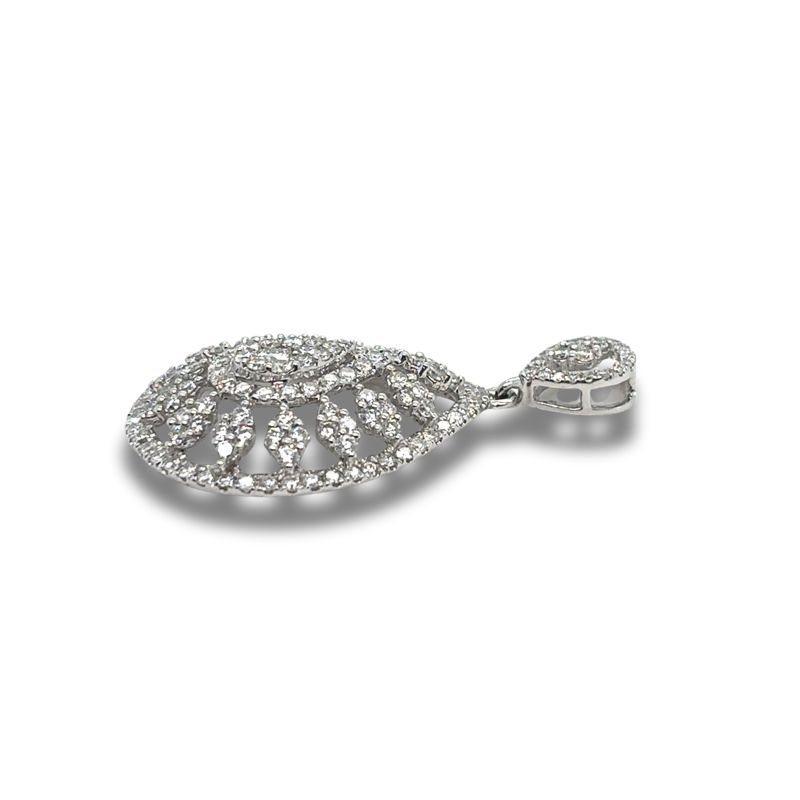 1.50ctw Ornate Tear Drop Diamond Pendant, 14kt White