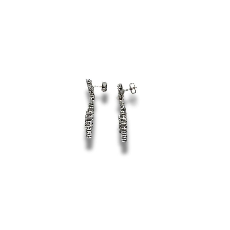 Tear Drop Earrings with 48-rd Single Cut Diamonds and 10 Brilliant Cut Diamonds Prong Set at 1.75ctw, VS Clarity and F-G Color. 38mm Long Crafted in 14kt White Gold, Vintage Circa 1960’s