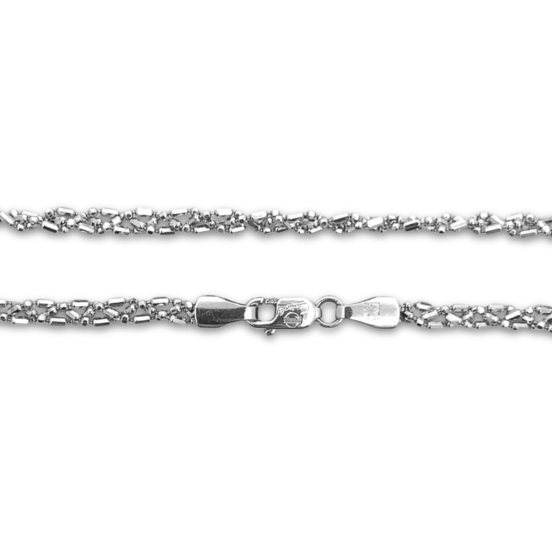 One 7″ bracelet crafted in 14kt white gold with diamond-cut fancy link bead pattern.