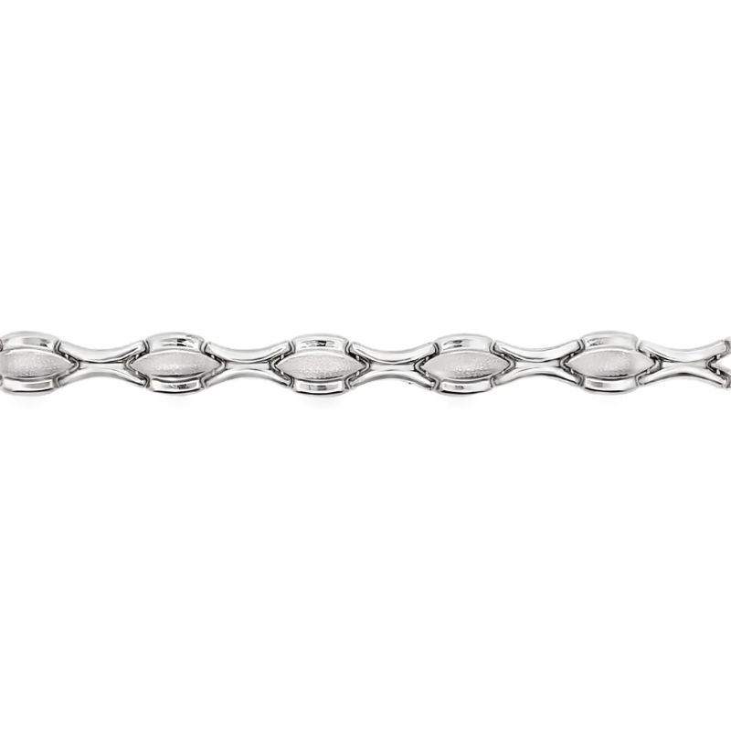 Flat Stampato Bracelet, Tappering from 8mm down to 4mm with Polished and Sandblasted Finishes, Crafted in 14kt White Gold. Length – 7.25~22