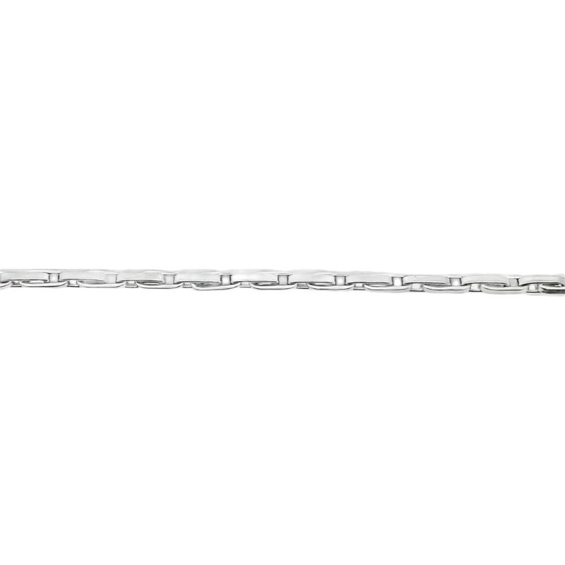 Handmade solid oval link gents bracelet crafted in 14kt white gold with polished finish. 3.37mm wide. Length – 8~22.