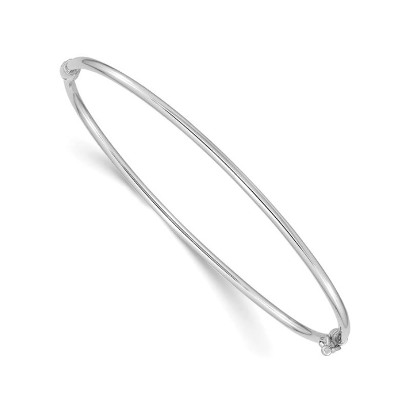 Polished 2mm Hinged Oval Bangle Bracelet, 14kt White Gold.