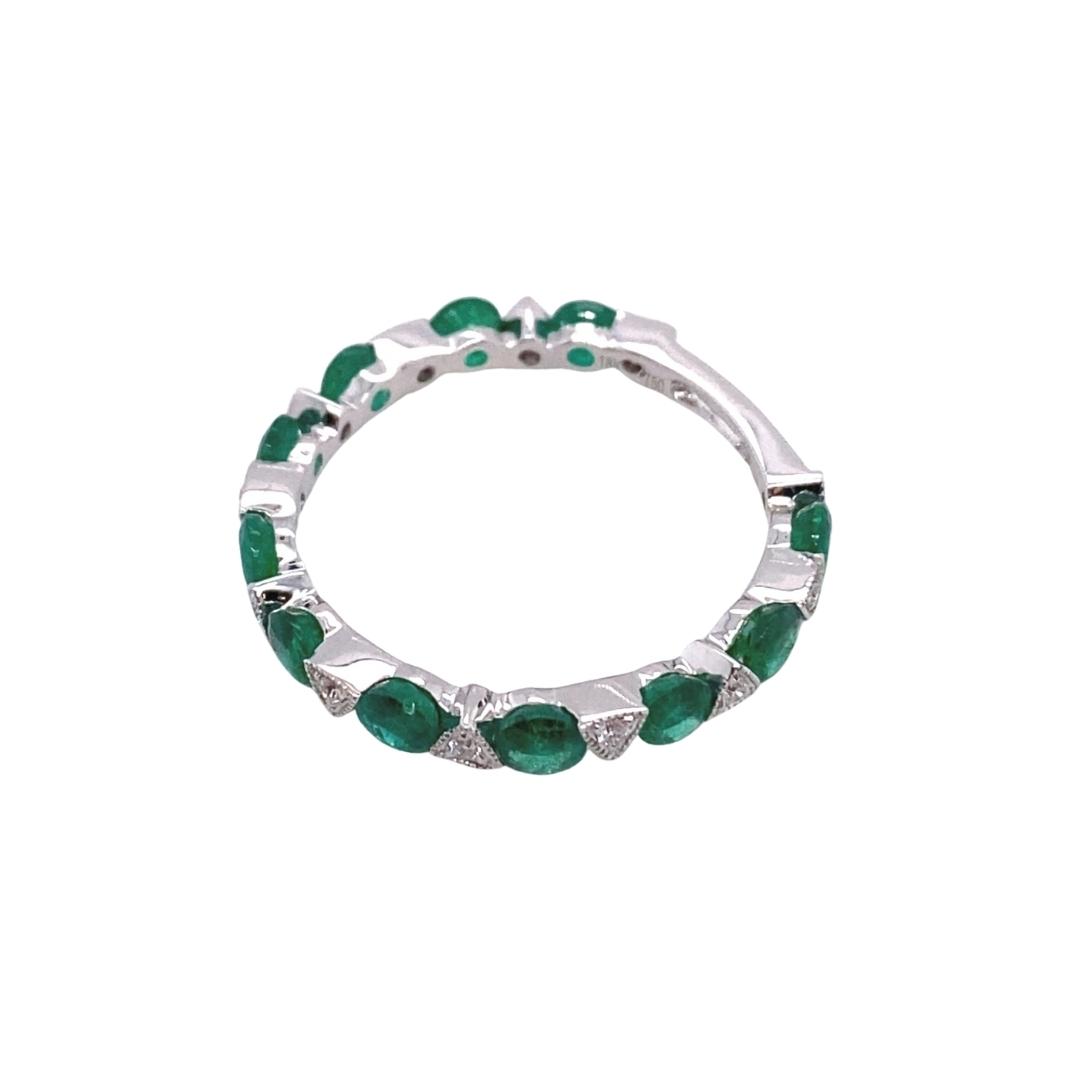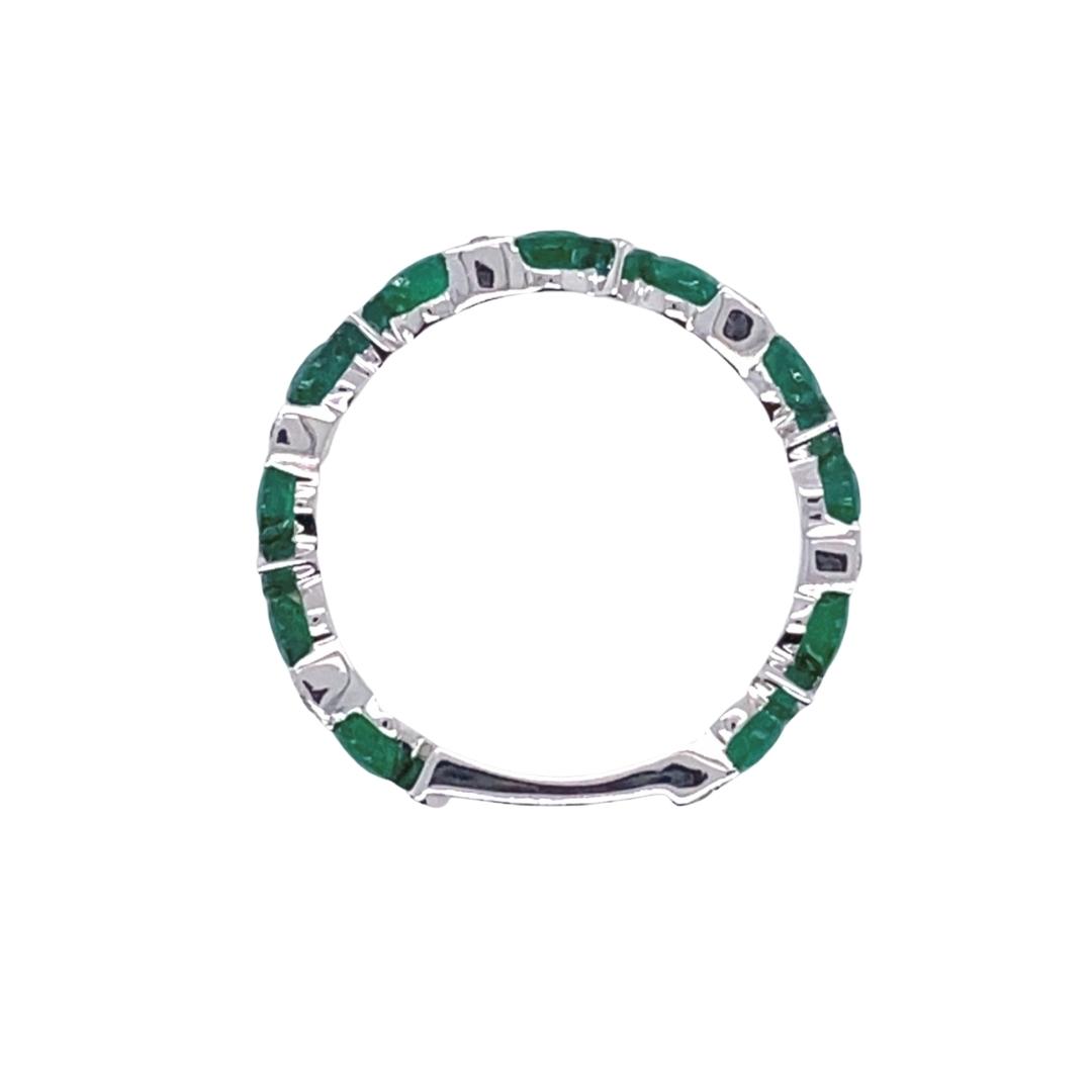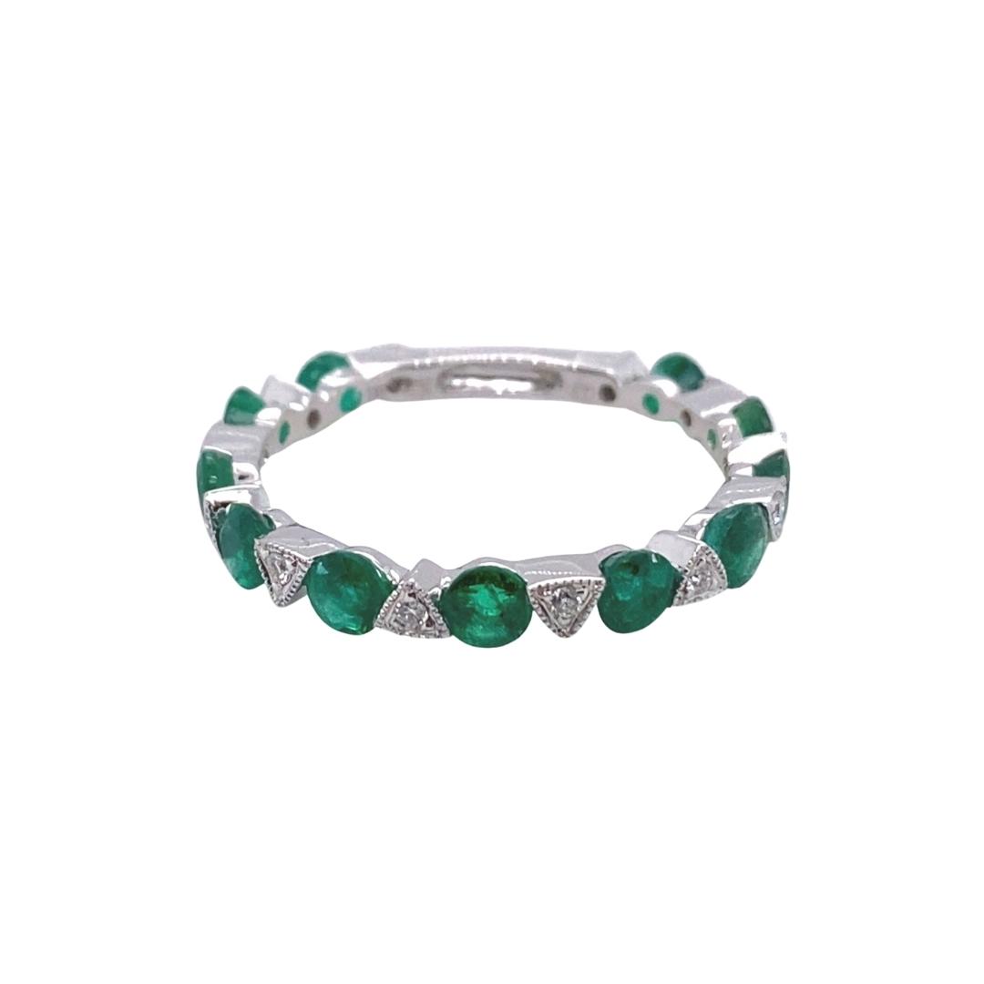 14kt White Gold Emerald and Triangular Diamond Stacker