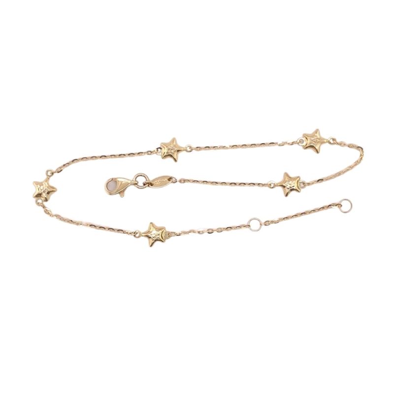 5 Puff Star Anklet, 14kt Yellow Gold