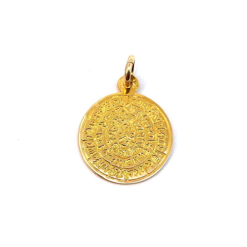 Mayan Calendar Disk Pendant, 20mm Length, 16mm Width, Crafted in 14kt Yellow Gold