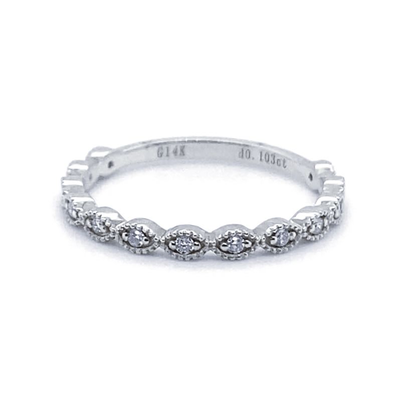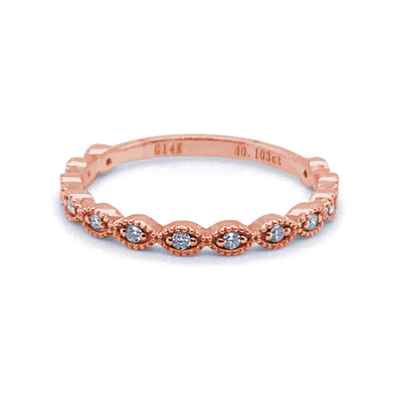 Dainty Marquise Shape Diamond Band. 13-Round Diamonds, Carat-0.10 Clarity-SI1 Color-G/H. Available in White, Yellow and Rose Gold.