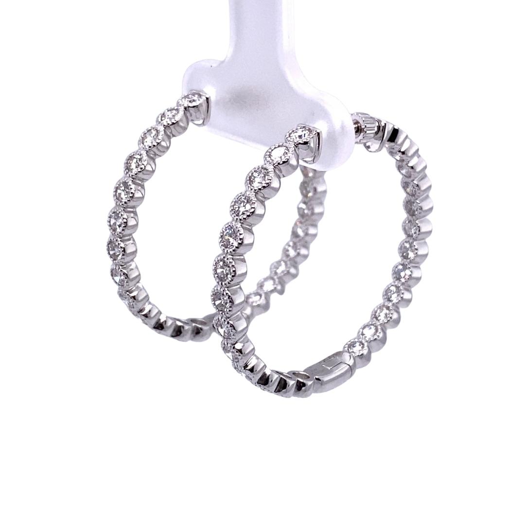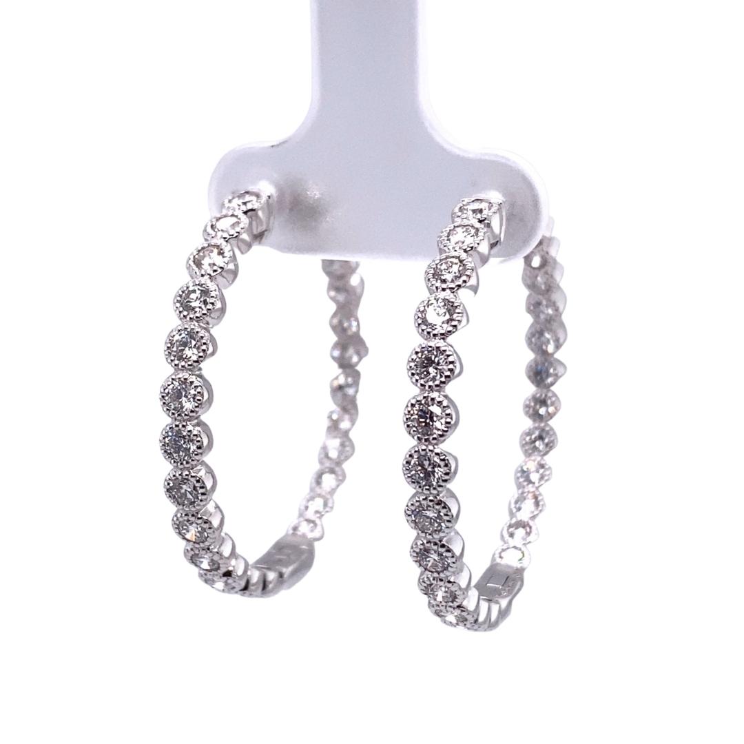 Bezel Set Milliigrain Diamond Hoops, 14kt white gold, 50 Round Diamonds – 2.14ct, VS2-SI1/FG. Dimensions – 31mm