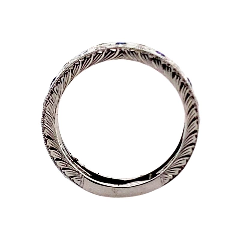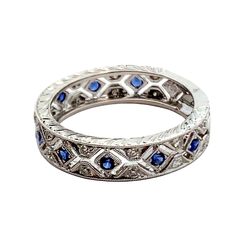 0.20ctw 20 Round Diamond & 0.30ctw Round Sapphire Antique Vintage Band 3/4 way Crafted in 14k White Gold.