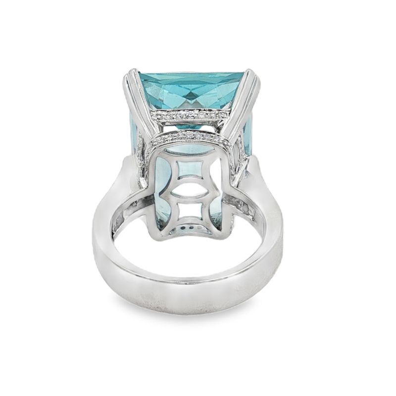 21ct Large Aquamarine Bag Diamond Statement Ring, 18kt White
