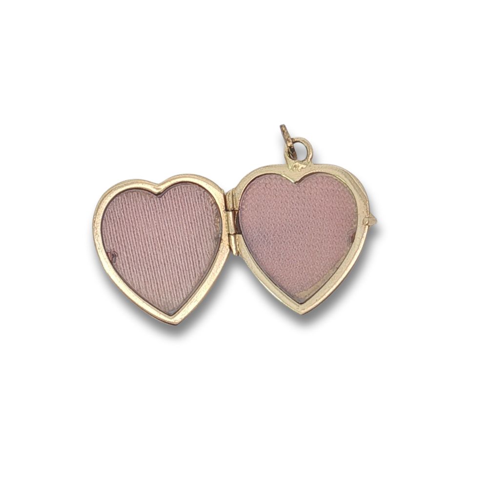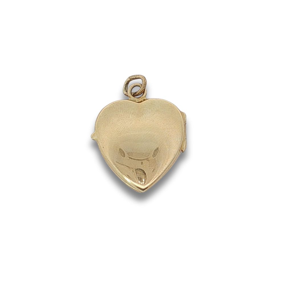22mm Wide Heart Shapped Locket. With Carvings in the Front and Polishd back for Engravings. Open up to 2 Pictures. Crafted in 14kt Yellow Gold