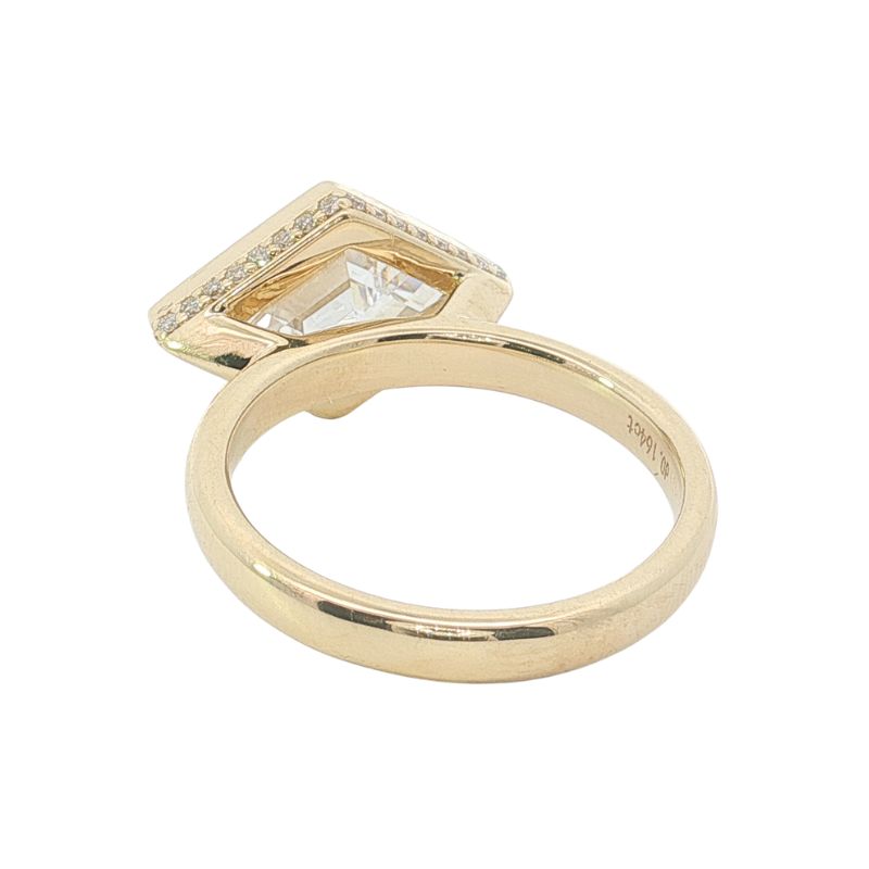 3.00ct Lab Grown Lozenge Step Cut Bezel Set Engagement, 14kt