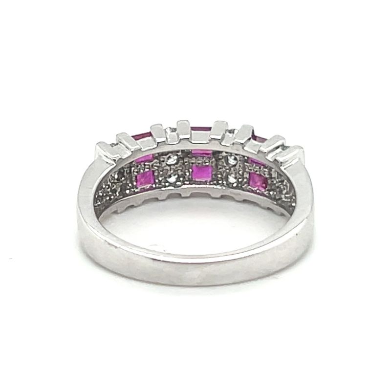 3 Row Ruby Princess With Round Diamond Channel Ring
