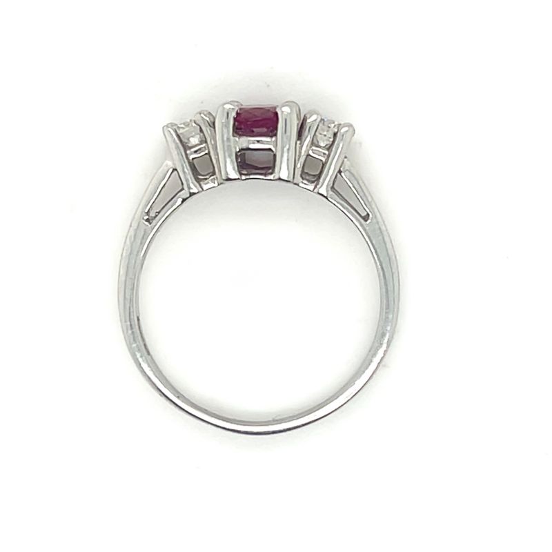 3 Stone 1ct Ruby and 0.33ct Round DIamond Ring, Platinum