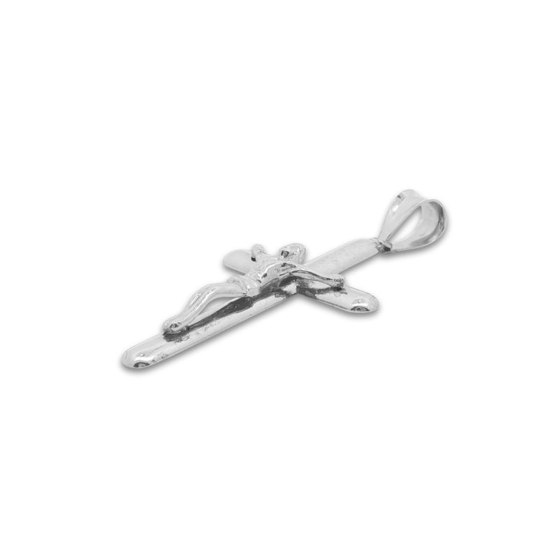 33mm Long Crucifix. 3.8mm Wide Half ome Plates, Crafted in 14kt White Gold