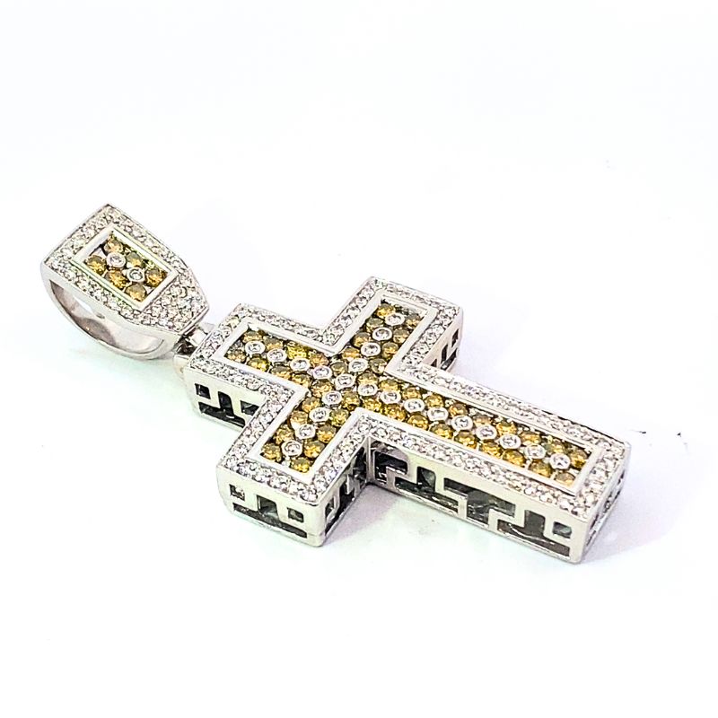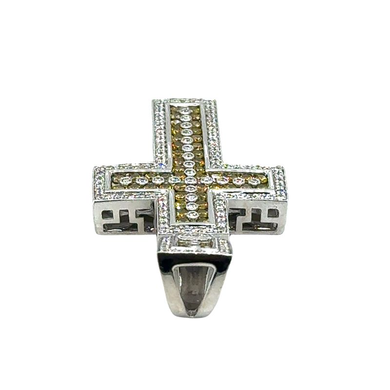 4.50ctw Yellow and White Diamond Cross, 14kt White