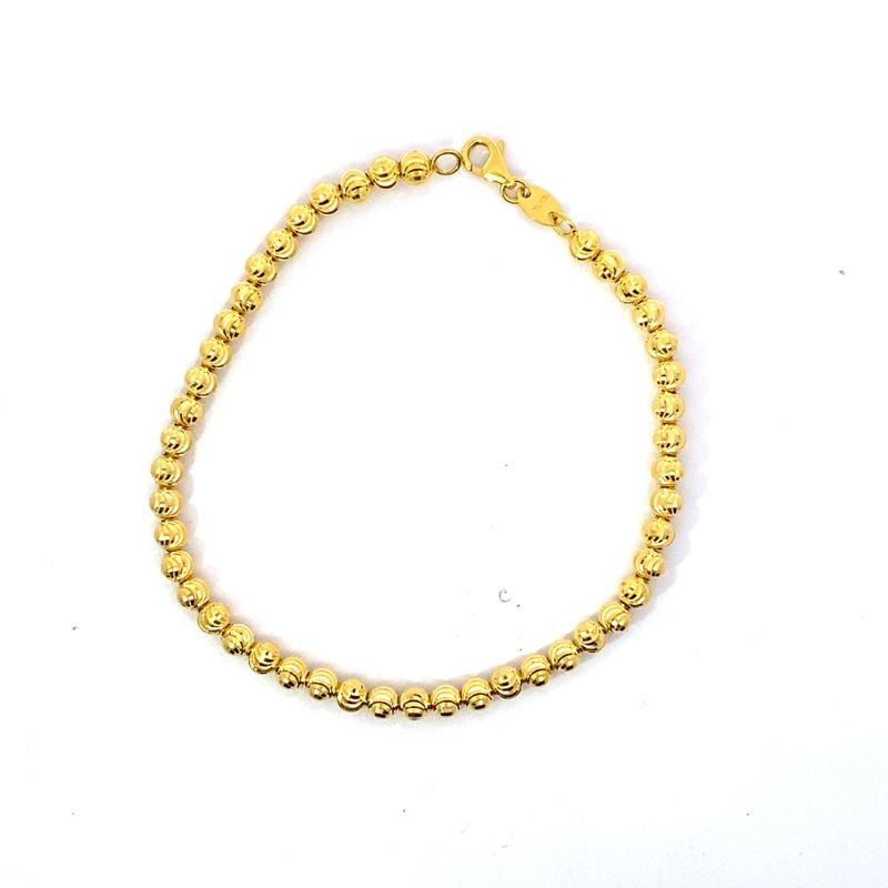 3.9mm Diamond Cut Beaded Bracelet, 7inches in Length, Crafted in 14kt Yellow Gold, Made in Italy