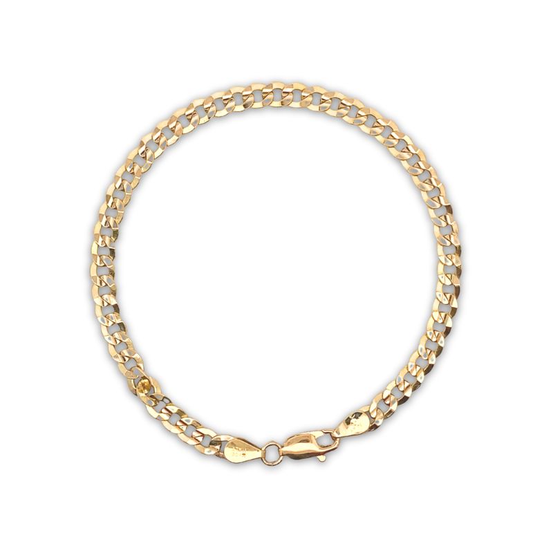 4.2mm Wide Curb Bracelet, 7″ long 14kt Yellow with Lobster Clasp
