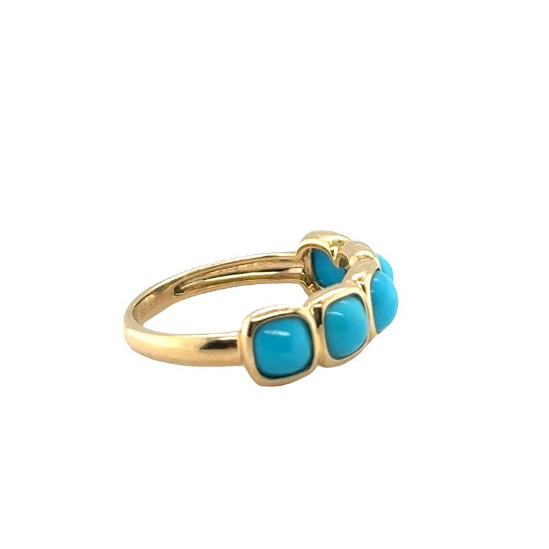 Five 4mm Cabachon Cushion Shapped Turquoise Stones with Bezel Frame. 6.2mm Wide and Crafted in 14kt Yellow Gold