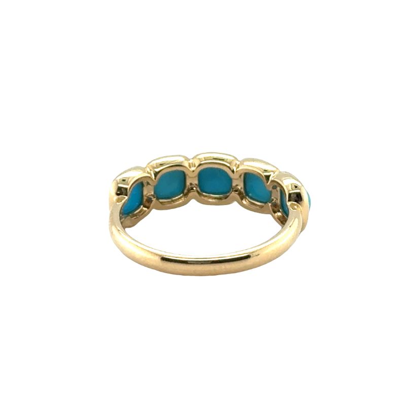 5 Cushion Cabachon Turquoise Ring in 14kt Yellow