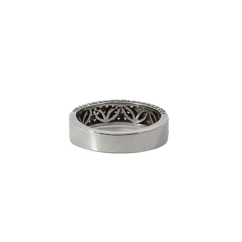 97 Round Diamonds Pave Set with 3 on Top and 1 on Each Side at 1.25ctw, SI-1 Clarity and F-G Color. 6.5mm wide and Crafted in 14kt Whtie Gold