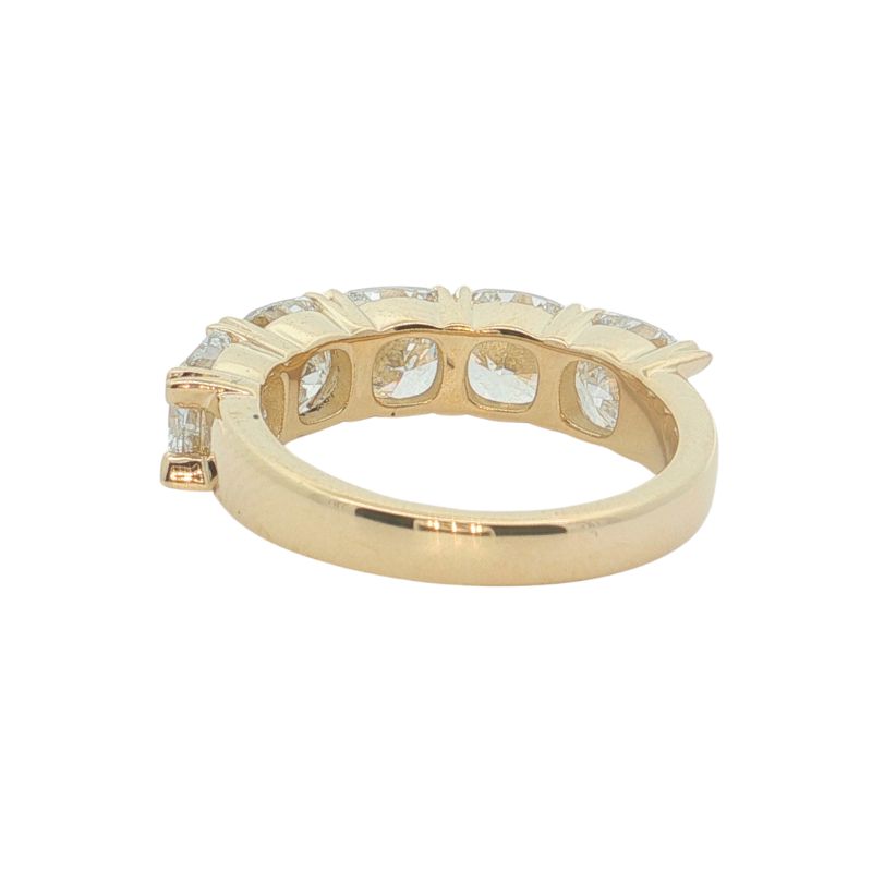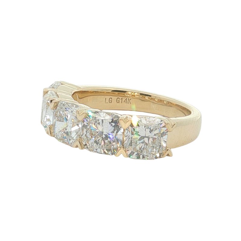 5 Cushion Prong Set Band with 5.05ctw Lab Grown Diamonds, VS Clarity and F Color. Crafted in 14kt Yellow Gold