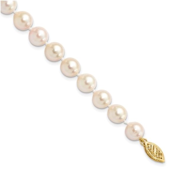 Polished Round, White 7-8mm Salt Akoya Cultured Pearl Bracelet, 7inches in Length, Crafted with 14kt Yellow Gold