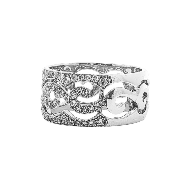 9.0mm Wide 0.65ctw Diamond Scroll Ring, 14kt White