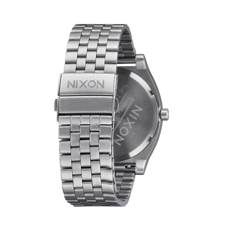 A1369 Nixon Time teller Solar Jade Sunray Dial, 40mm, Japanese solar 3-hand; Miyota 2170 Movement, Dial features raised stick indices and custom molded hands, 40.5mm custom solid stainless steel case and fixed bezel with a 100 meter / 10 ATM water rating. Comes with a hardened mineral crystal, triple gasket stainless steel crown, stainless steel screw down caseback and spring pin lugs, 20mm custom 5-link quick release stainless steel bracelet, Battery will last 4 months on a single charge. Charged by sunlight or ambient light. Charging times will vary; see user manual for details.