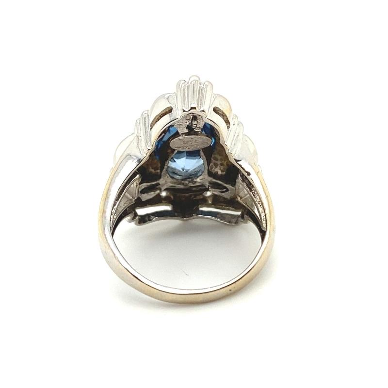 Larger Art-Deco Style London Blue Topaz Antique Diamond Ring