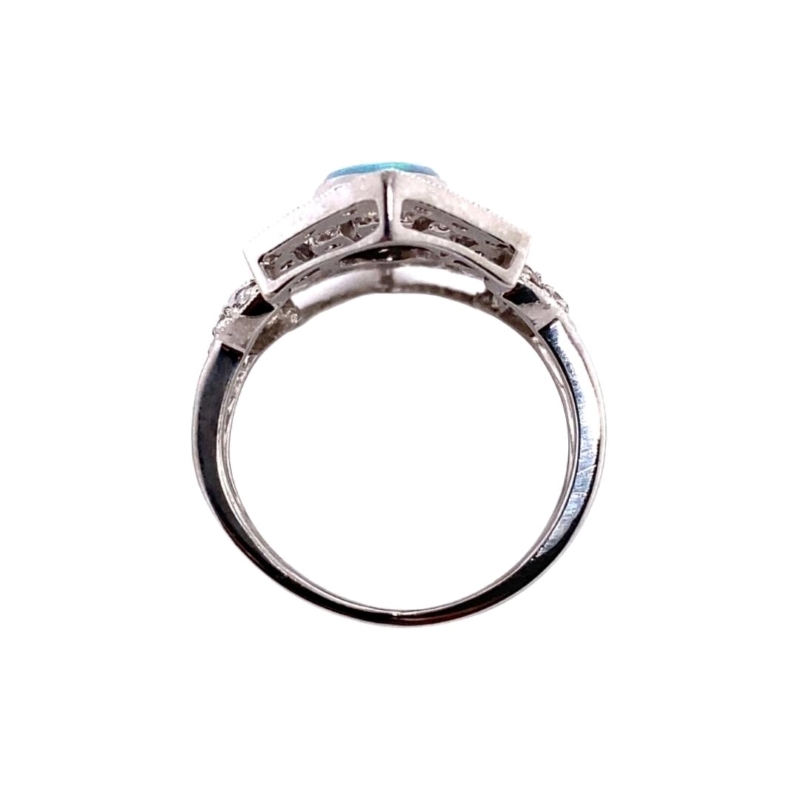8×6 Autrailian Opal with 40-rd Diamonds at Carat 0.55c, Clarity SI-2, Color H. Set in 14kt White Gold. Vintage Circa 1980’s
