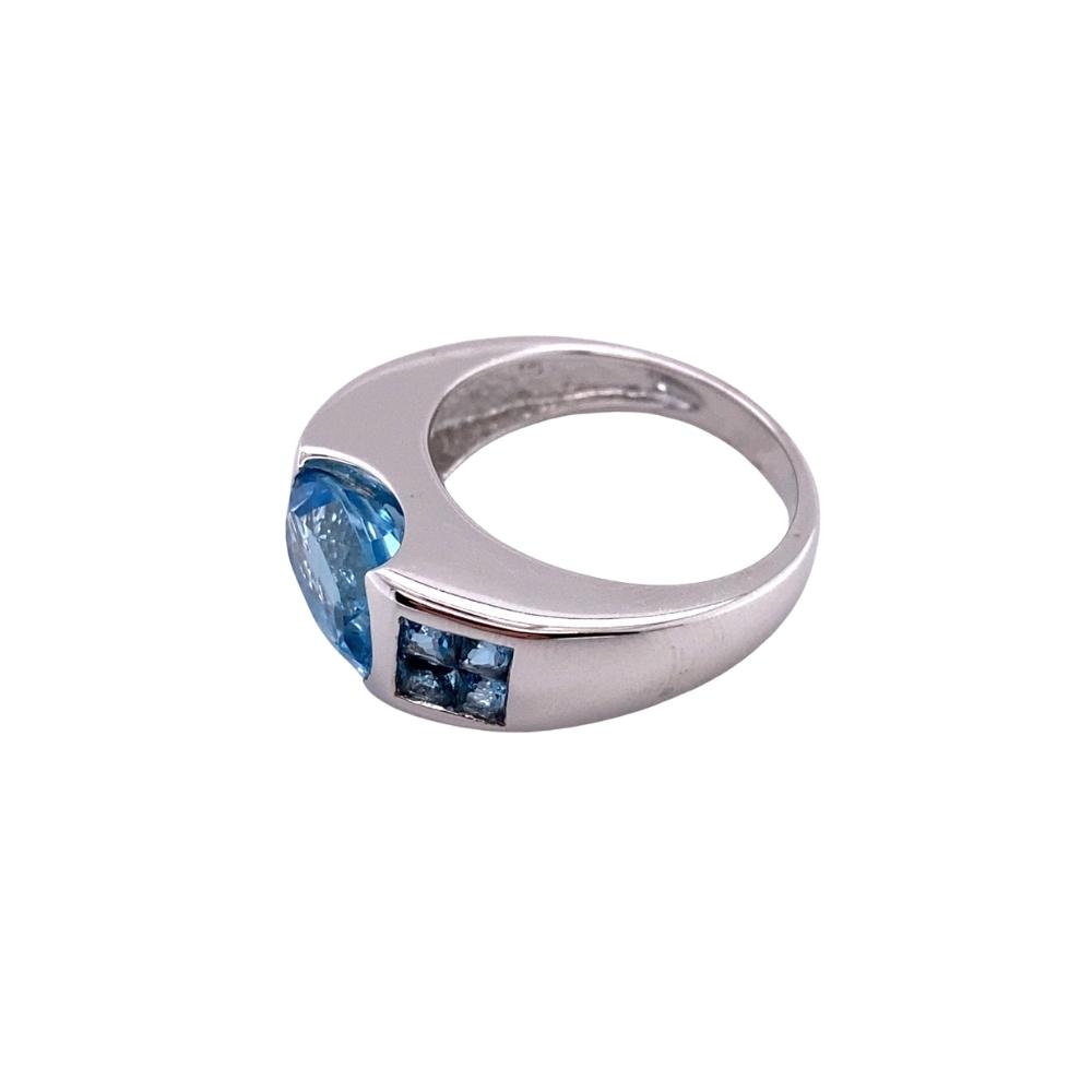 Contemporary Ring with Oval and Princess Cut Blue Topaz, 5.00ctw, 14kt white gold.