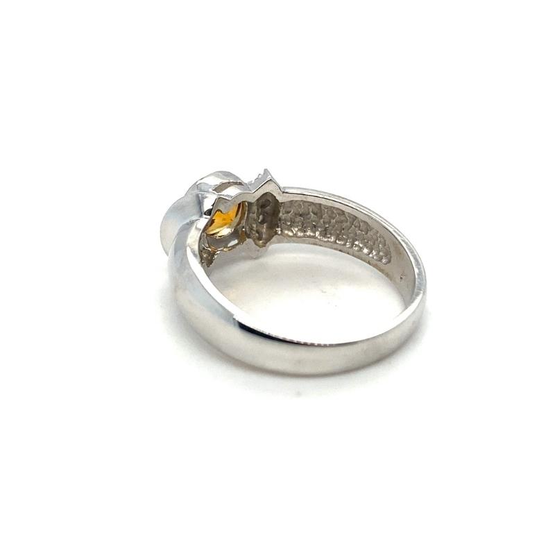 Citrine and Diamond Ring with one 7mm round bezel set citrine stone and 10 round diamonds pave set on the side set in 14kt white gold.