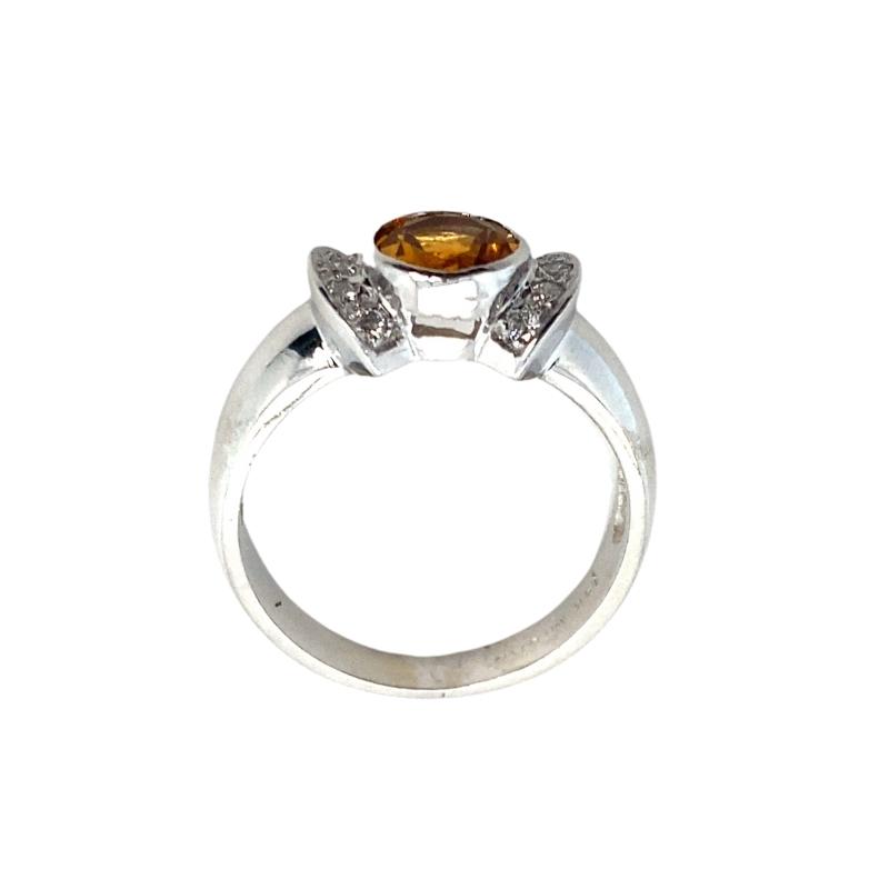 Bezel Set Round Citrine Ring with Pave Set Diamonds