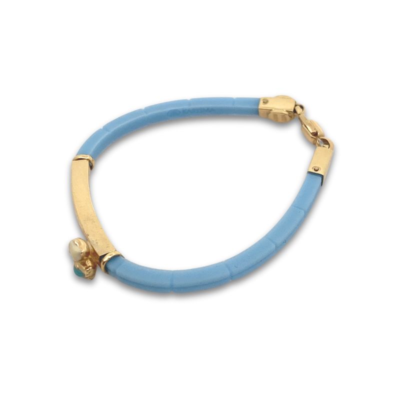 Blue Rubber Duck and Gold Baby ID Bracelet, 14kt