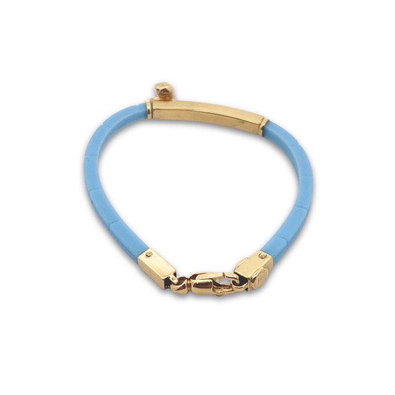 Blue and White Enamel Baby Ducky ID Bracelet, 3.7mm Wide Plate Crafted in 14kt Yellow Gold with Adjustable Rubber Bracelet with Lobster Clasp. Perfect for your Little Loved Ones
