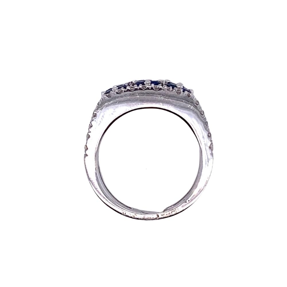 Blue Sapphire and Diamond Band, 14kt white gold.
