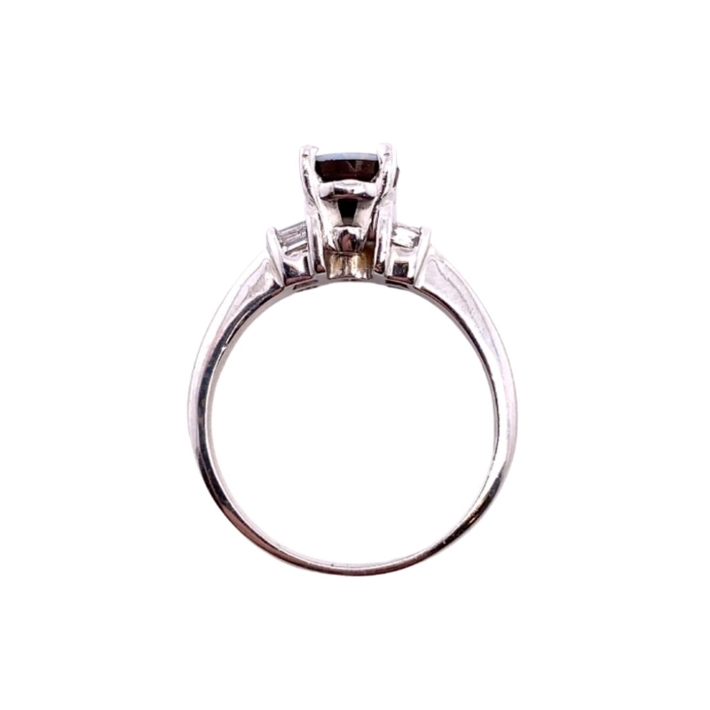 One 14kt white gold ring setting with one 0.93ct boulder opal that is beautful in color with iridescent understones of blue, periwinkle, pink and greys. This opal is prong set between 0.20cts of channel set SI1/F-G baguette diamonds. Size – 7. Sizing available upon request. Additional charges may occure. Please inquire within.