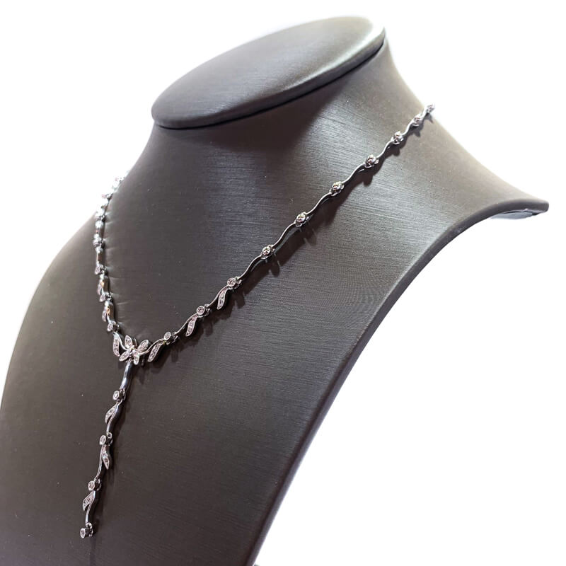 Butterfly Leaf “Y” Necklace 18Kt White Gold 34RD – 0.50cts SI/GH