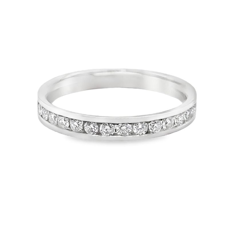 Channel set Diamond Band, 14kt white gold. 14 Round Diamonds – 0.42cts. SI1/G. Width – 3.0mm