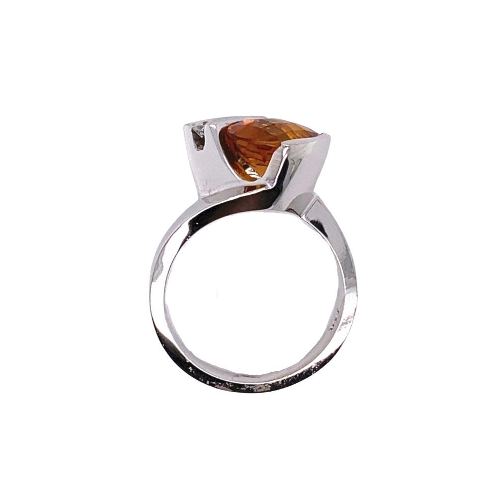Checkerboard Cut Oval Citrine ring with Diamond Accents, 14kt white gold.